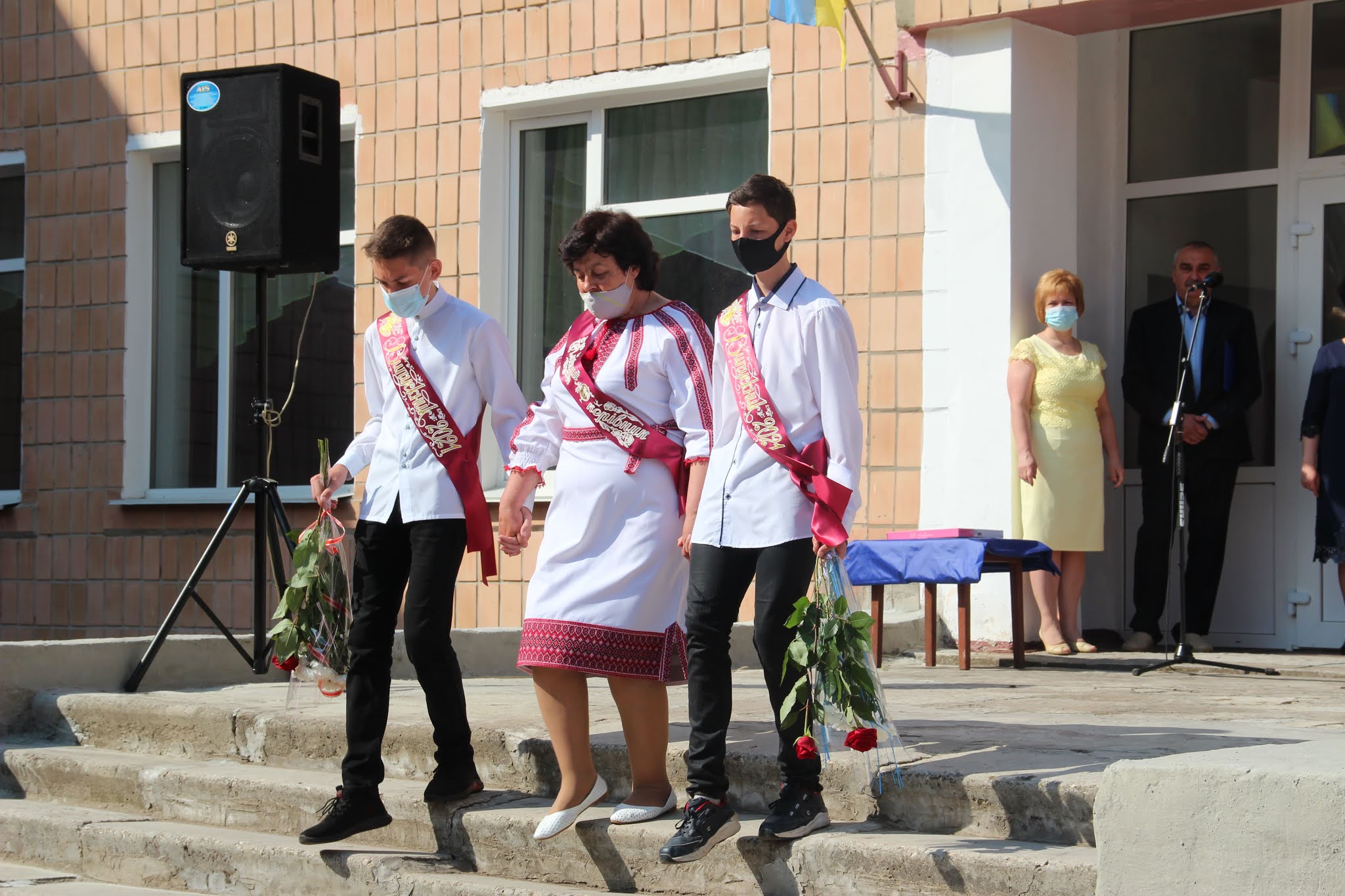 Сьогодні — день прощання зi школою. Попереду незвiдана даль. Позаду батькiвський порiг, протоптана стежка в шкiльному дворi, незрадлива мамина усмiшка зi сльозою на щоцi. Де б не були ви, куди б не закинула вас доля, але отой обрис рiдного краю, рiдної школи має завжди бути присутнiм.
